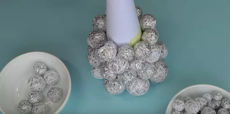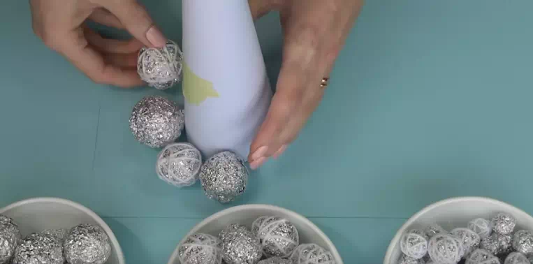Вклеиваем наш декор между шариками, соблюдать четкость и симетрию не нужно.