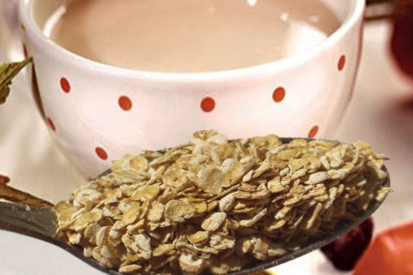 - В овсяные хлопья добавить кефир или подкисшее молоко.
