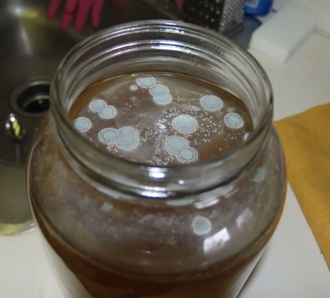 - Если появился бурый налёт, значит гриб гибнет. Чтобы этого избежать, нужно вовремя сливать настойку, а также правильно ухаживать за медузомицетом.