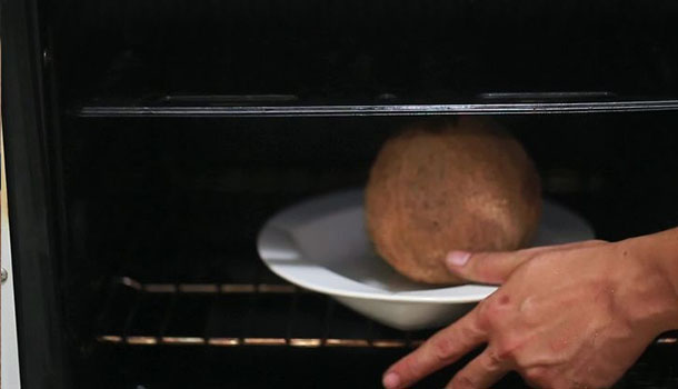 - Поместите кокос в духовую печь с температурой 180 ?C на 20 минут.