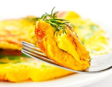 Это блюдо богато на аминокислоты и микроэлементы. Омлет содержит в себе витамины А, B и D, лютеин, калий, железо и фосфор.