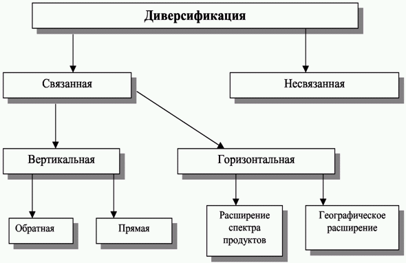 В зависимости от того, в какой сфере применяется метод диверсификации, выделяют следующие ее типы:
