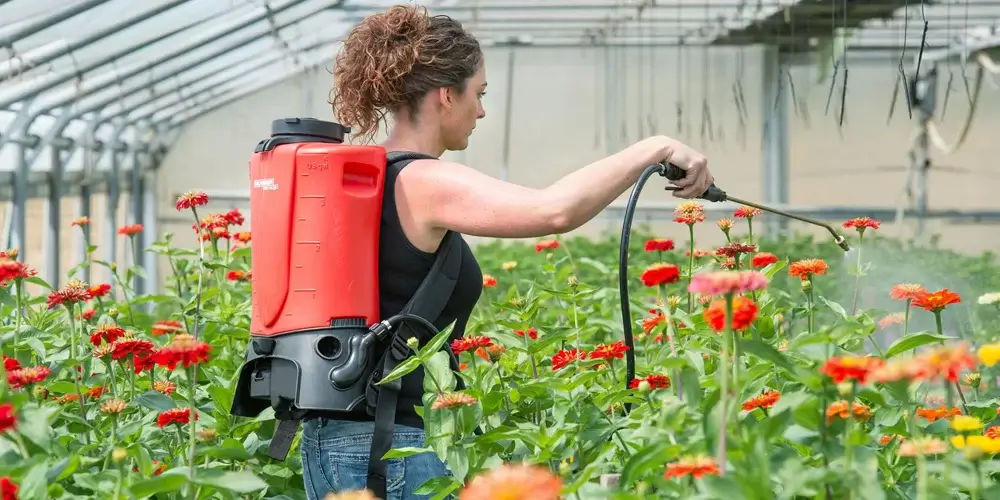 Бензиновый опрыскиватель работает на бензине и может работать без особых усилий пользователя на протяжении нескольких часов.