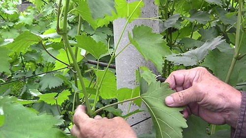Если куст хорошо сформирован, тогда он не нуждается в боковых побегах второго порядка. Они ещё называются пасынками. Чтобы они не забирали влагу, которая нужна для винограда, их прищипывают.