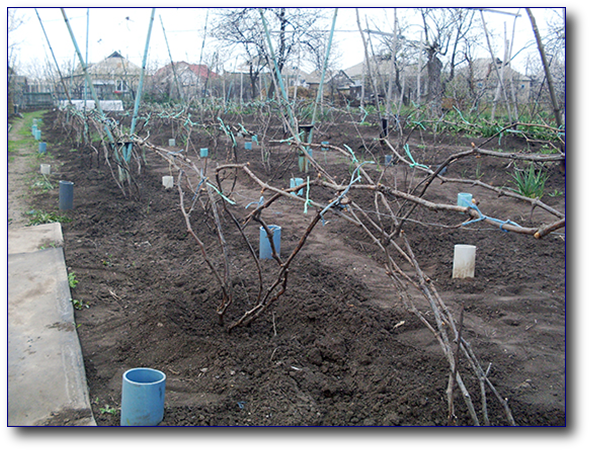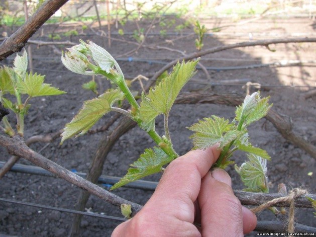 На зимний период оставляют больше побегов, чем нужно. Так как они отмирают. Когда после зимнего сна виноград снова начинает расти, удаляют некоторые побеги у своего основания.