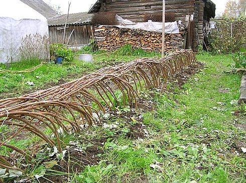 Чтобы во времена сильных зимних морозов малина не пропала, её пригибают к земле и связывают между собой.