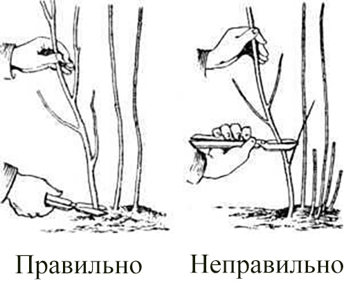 На картинке ниже показано, как правильно подрезать побеги и как этого делать не стоит.