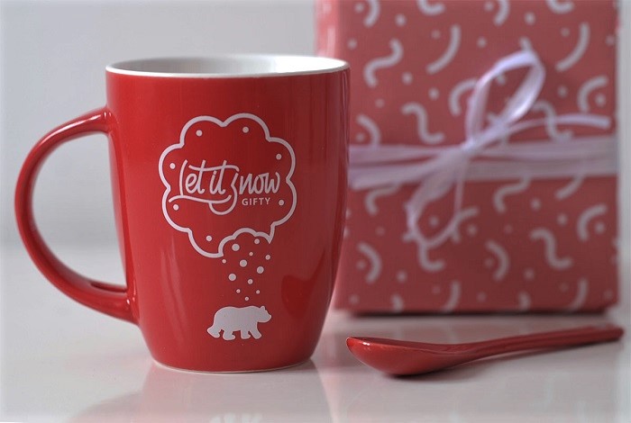 - Чашка с тематической надписью (можно новогодней, а можно о маме) и упаковка любимого чая с пожеланиями внутри;