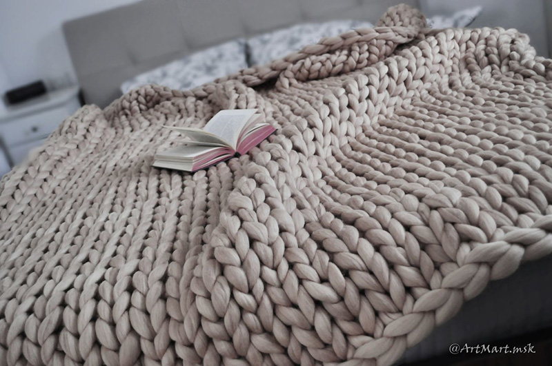 - Теплый красивый плед из шерсти мериноса, согревающий по вечерам.