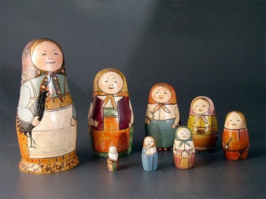 Первая кукла, изготавливаемая из липы, отличалась от более поздних вариантов скромностью одежды, простотой палитры. Сквозь слой краски и лака просматривалась фактура, а контуры рисунка не наносились кистью, а выжигались. В коллекции интернет-магазина «Матрешки» собраны изделия народных промыслов, среди которых прототипы первых русских матрешек, более поздние куклы, золотая Хохлома, реплики Карла Фаберже, другие сувениры, выточенные, расписанные вручную, а также сувенирная продукция в русском национальном стиле.