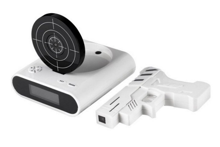 - будильник в виде мишени (чтобы его выключить, нужно выстрелить);