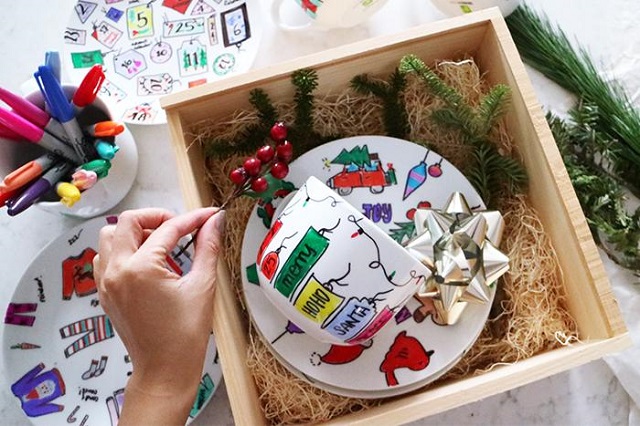 - самостоятельно расписанная посудами (с изображениями символа года или в новогодней тематике);