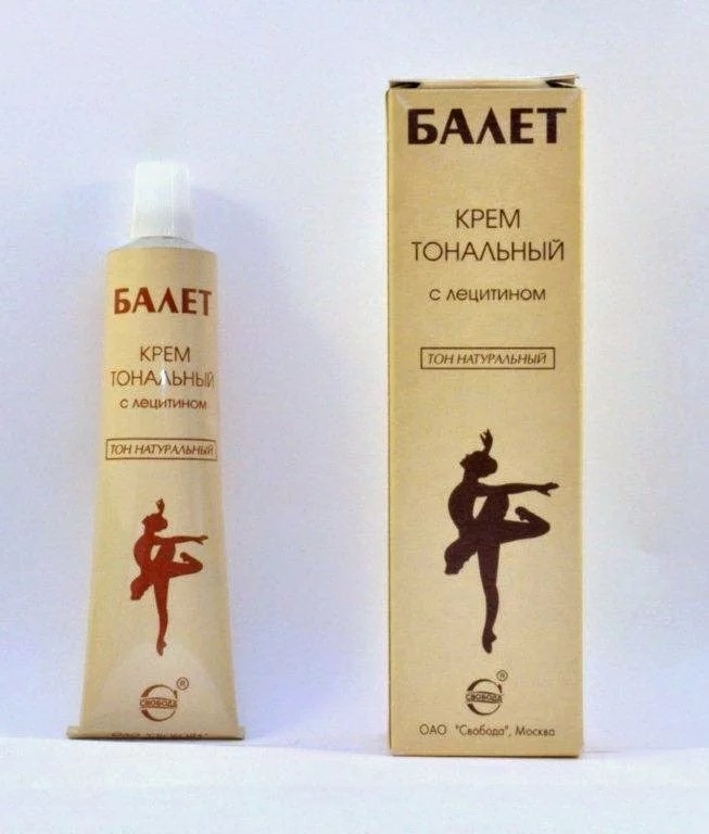 Тональный крем использовали гораздо реже нежели сейчас и назывался он "Балет", тонов имел он не много и подобрать под свой цвет кожи оптимальный вариант было сложно, плюс Балет был очень плотный по структуре и смотрелся на лице маской.