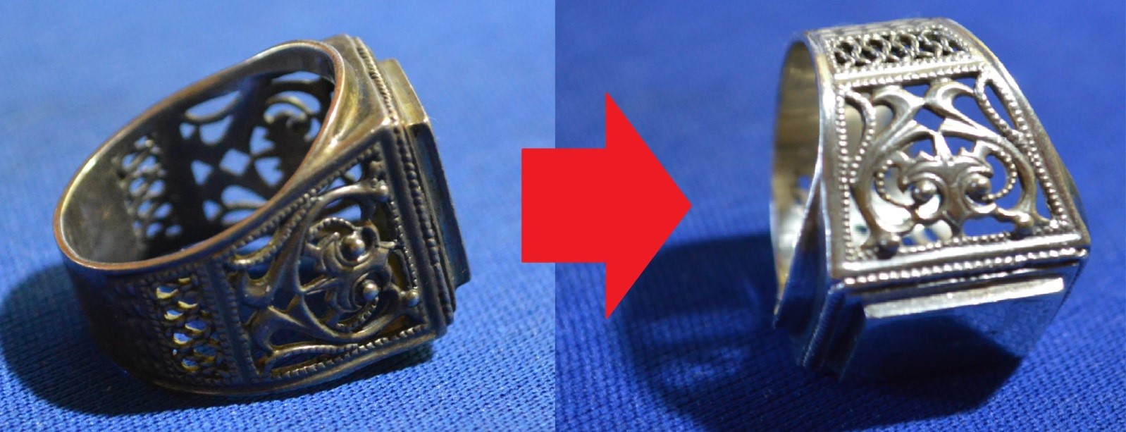 - Замочить в подогретом 10% растворе нашатырного спирта или лимонной кислоты (не подходит для изделий с камнями).