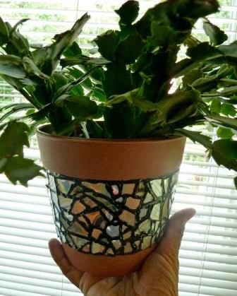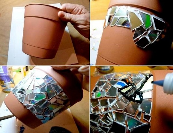 После того, как клей полностью высохнет, закрасьте промежутки между частями дисков на горшке и работа завершена.