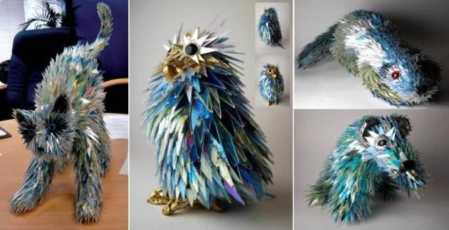 Нетривиальную идею применения компакт-дисков придумал австралиец Шон Авери. Кромсая ножницами некогда необходимую компьютерную вещь, и в определенной последовательности склеивая кусочки, можно получить совершенно необыкновенные и впечатляющие скульптуры животных и птиц.