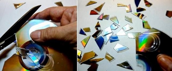 - Разрежьте CD диск на кусочки разного размера и длины.