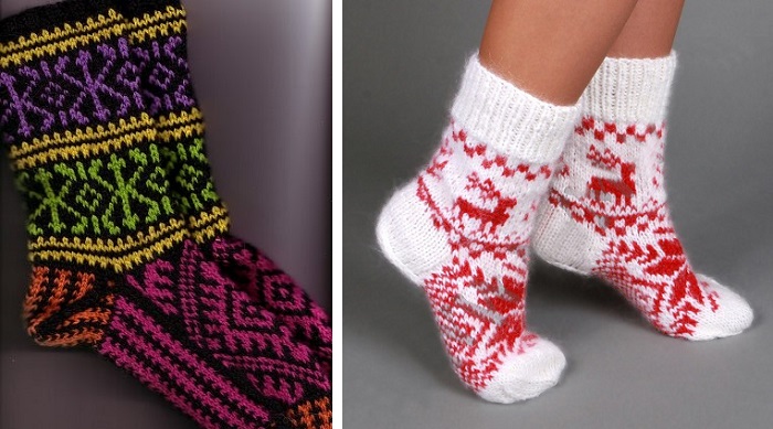 - Нити из колгот переплетают с обычными вязальными нитям, когда речь идет о носках. Ведь такая стопа будет более крепкой, а, значит, и носить их можно будет дольше.