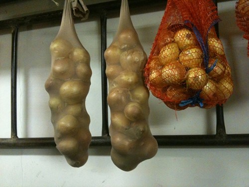 - Хранить в колготках лук и чеснок – правильно. Воздух проникает между головками растений, не давая прогнить в середине. Подвесив такой мешочек и завязав несколько жгутов между слоями, вы в холодное время можете отрезать по несколько штучек, чтобы не развязывать полностью.