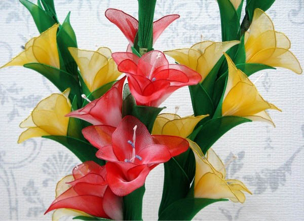 - При желании можно украсить интерьер красивыми собственноручно сделанным цветами.
