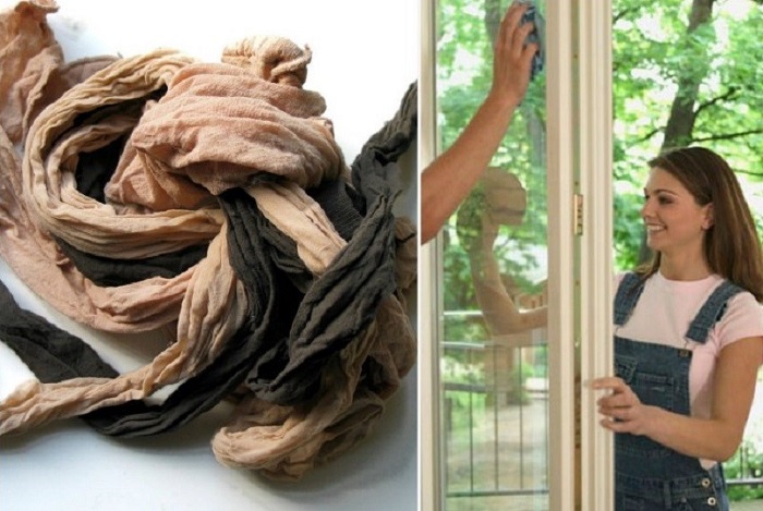 - Москитную сетку можно залатать отрезком из чулка, чтобы не дать насекомым проникнуть в жилище.