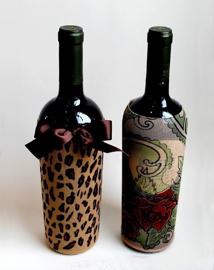 - Имея в арсенале колготы с принтом или узором, вы можете украсить винные или другие бутылки с алкогольными напитками.