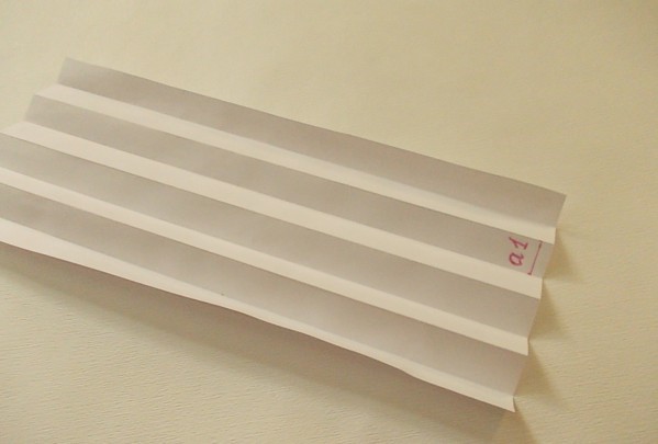 - Приготовленный лист сложите вдоль так, чтобы получилось подобие гармошки. Должно получиться 8 изгибов, последний же служит для крепления. Скотчем закрепите друг к другу 4 ребра (должны ложиться друг на друга);