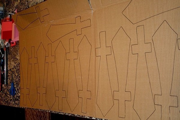- На подготовленном материале нарисуйте 4 (или больше) одинаковых меча;