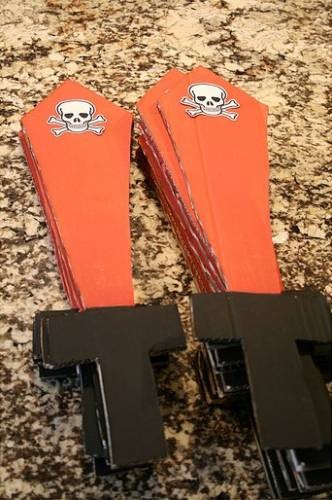 - Острие ножа прикрепите к ромбикам скотчем или клеем;