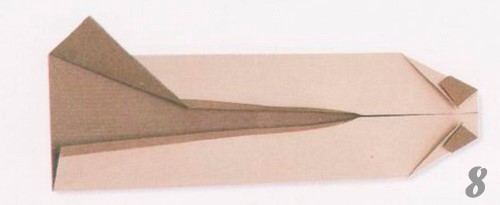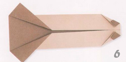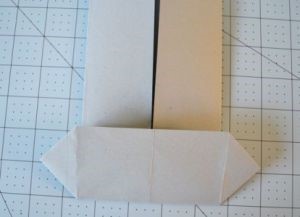 - Отклоните назад все завернутые элементы, поверните короткой стороной вниз и там сделайте треугольники, углы которых будут касаться намеченным линий. А концы слева и справа заверните к середине.