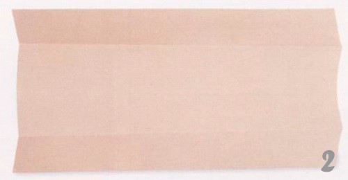 - Разверните лист бумаги так, чтобы обе длинные стороны оказались снизу и сверху. Возьмитесь за верхнюю кайму и сложите вдвое, разверните. Затем обе стороны листа заверните к полученному центру.