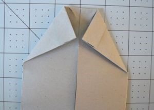 - Чтобы поделка приобрела надлежащий вид, загните нижнюю часть вверх и заправьте углы под воротник.