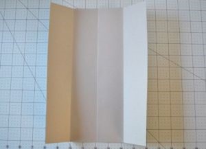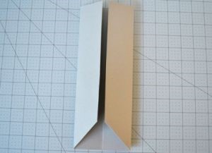 - Возьмите приготовленный лист и сложите вдвое по длине, чтобы определить центральную линию. После разверните и сложите так, чтобы крайние стороны оказались по центру. Следуйте фото.