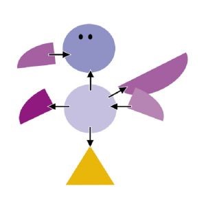 - Сложите различные геометрические фигуры (части птичек) так, чтобы получилось туловище, голова, крылышки, клювик, лапки.