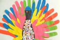 Интересная идея создания жар-птицы состоит в том, что нужно обвести ладошки. Ребенок с удовольствием и гордостью поучаствует в важном процессе.