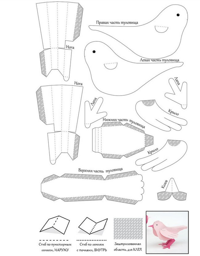 Схема, по которой делается объемная птичка: