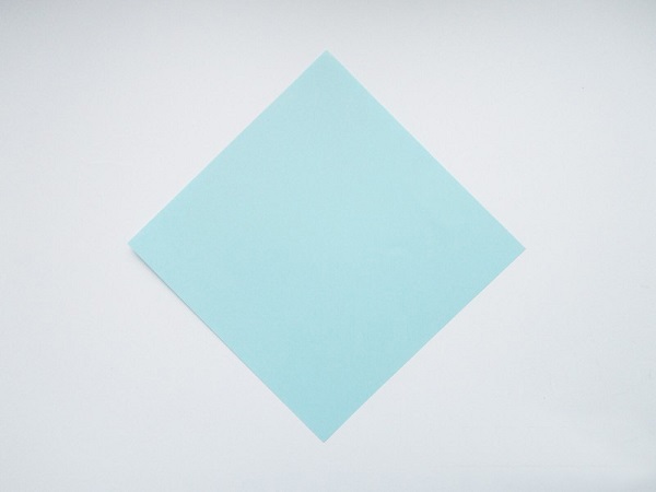 Перед началом работы приготовьте лист бумаги и придайте ему квадратную форму. Можно использовать одностороннюю цветную бумагу, но тогда белой стороной положите вниз.