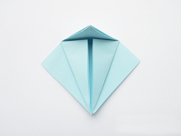 Углы, находящиеся справа и слева подтяните к центру, а угол сверху заверните вниз.