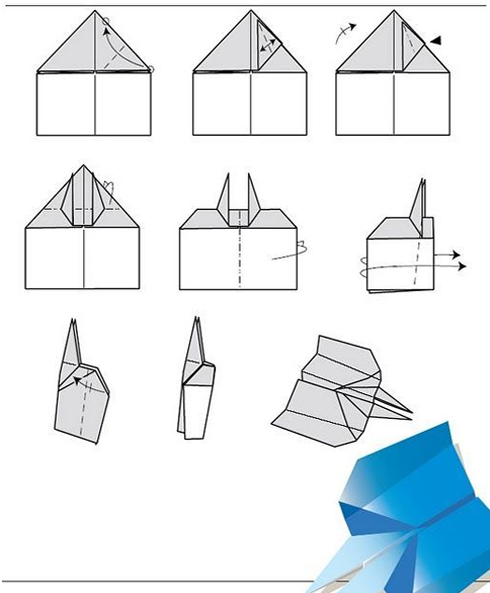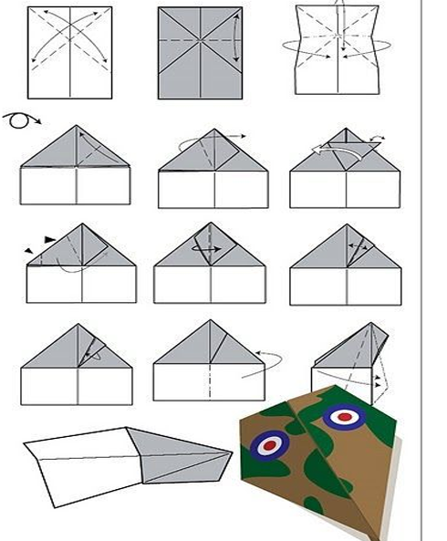 Вот несколько схем, следуя которым можно создать бумажные самолёты различных моделей.