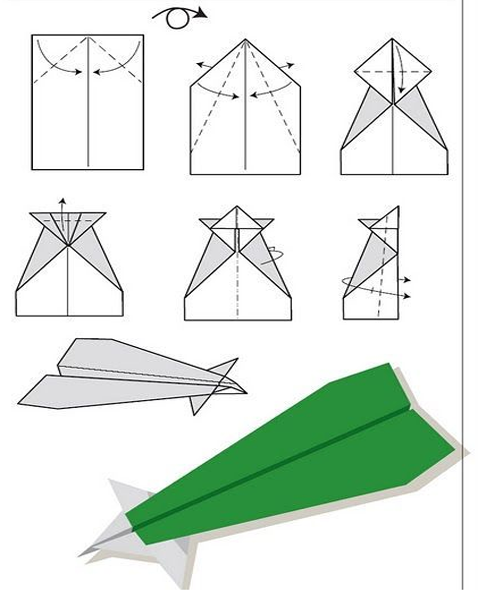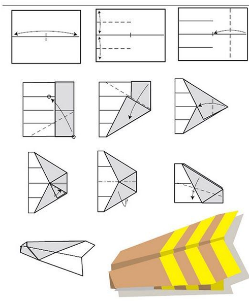 Сложно поверить, но представители Книги рекордов Гиннеса запретили листок бумаги. Что же в нем такого опасного? Дело в том, что самолетик, сделанный из обычной бумаги по схеме ниже, бьёт все рекорды по дальности запуска.