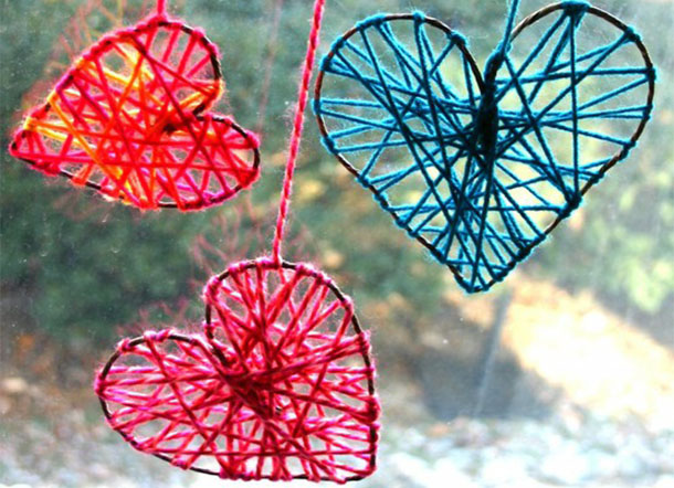 Из проволоки делаем сердце, а потом обматываем нитками.