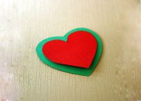 Делать такие закладки очень легко. Из картона вырезаем два сердца разного размера и наклеиваем их друг на друга. Оставляем низ маленького сердца не проклеенным. Вот и все.