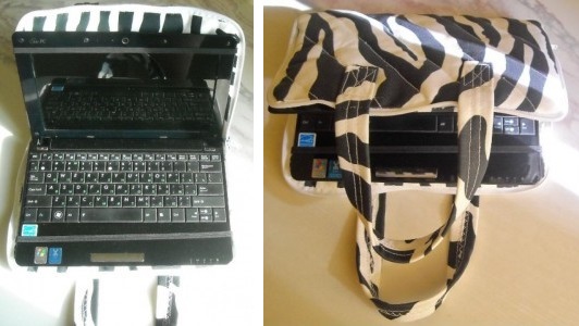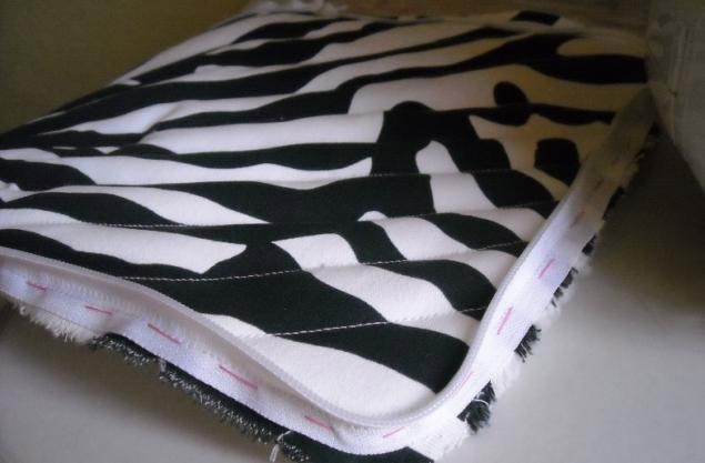 6. Теперь пришиваем подкладку. Для надежного крепления ноутбука пришиваем резинки.