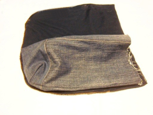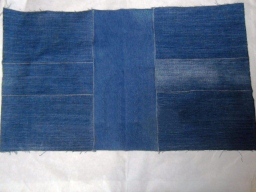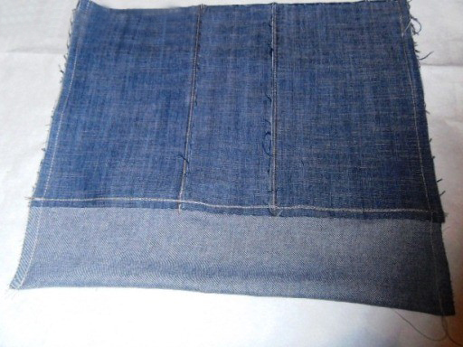 3. Теперь нужно между двумя основами положить дно нашей будущей джинсовой сумки и сшить его с другими частями.