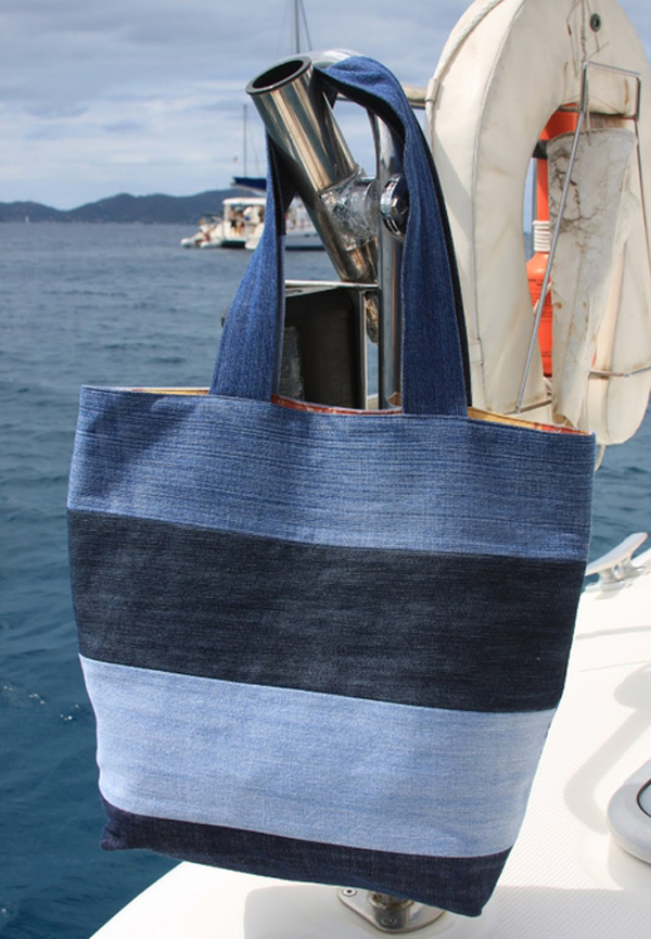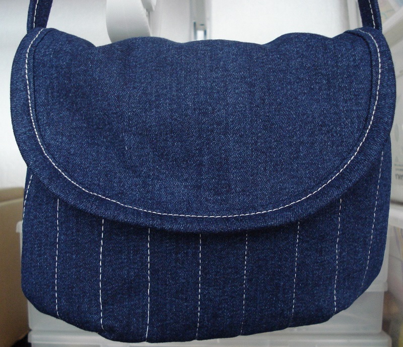 8. Все сшиваем и получается новая джинсовая сумка, которую можно украсить декупажем, бисером, лентами или заклепками.