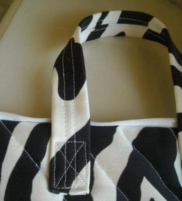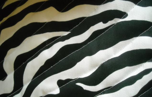 2. Складываем будущую сумку слоями. Сначала ткань, потом синтепон. По всей длине с помощью швейной машинки прострочить заготовку. Рисунок строчки может быть разным.