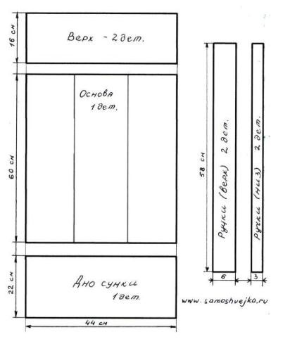 1. Для начала нужно определиться с размерами изделия, а также ознакомиться с частями, из которых состоит сумка: