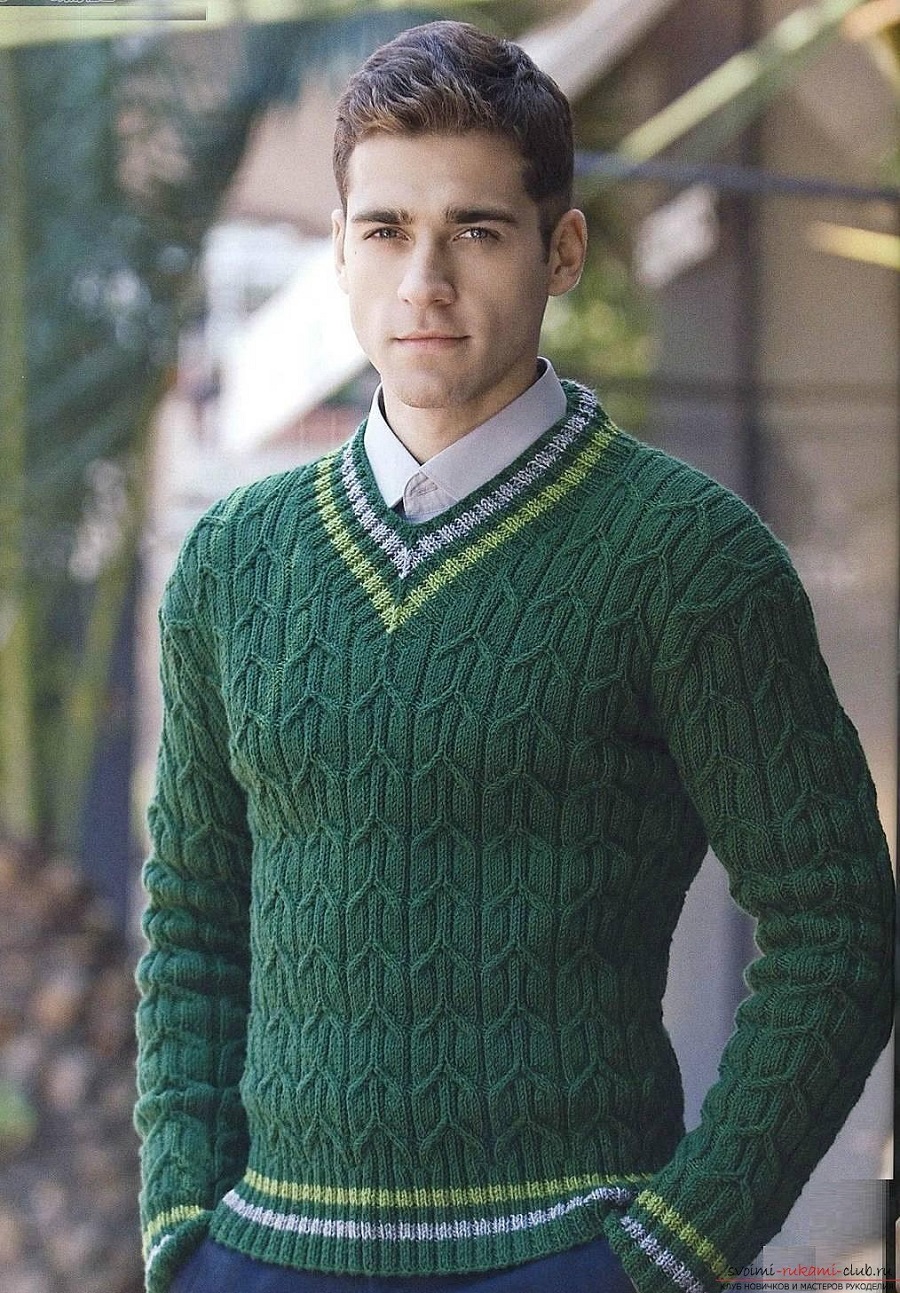 Вязаный мужской свитер своими руками