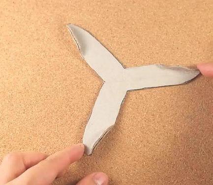 - Маркером нарисуйте на выбраном материале бумеранг с основной частью и двумя (или несколькими) крыльями; Совет! Чтобы все стороны получились одного размера, сделайте макет одного крыла на отдельном листике, вырежьте и поочередно прикладывайте, обводя маркером. Снаряд получится красивым и симметричным.