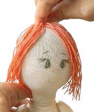 4. Теперь можно делать прическу. Если вас не устраивает длина или вы хотите сделать модную стрижку своей кукле, то это можно делать на этом этапе.